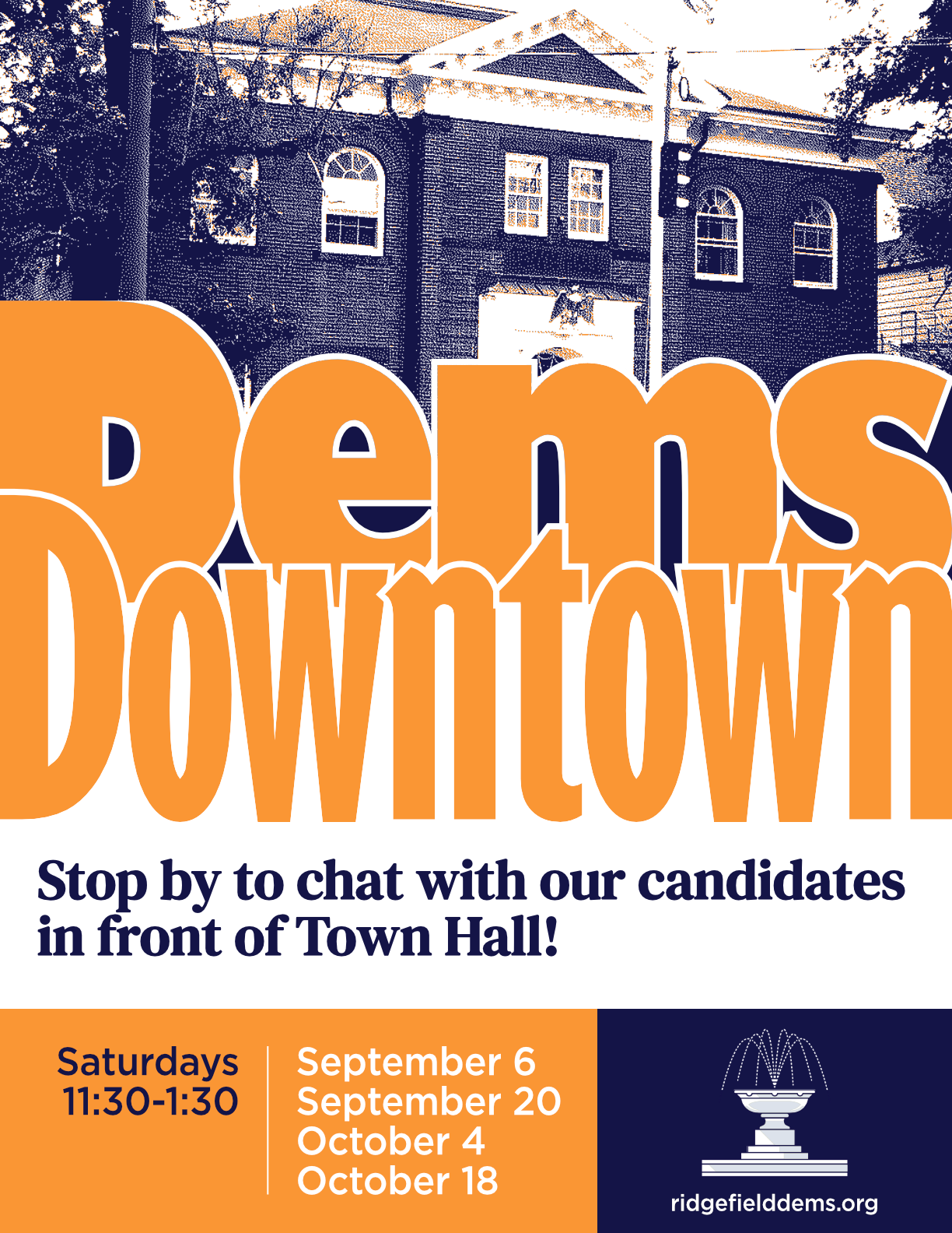 Town Hall 400 Main St, Ridgefield, CT, United StatesStop by to chat with our candidates in front of Town Hall!